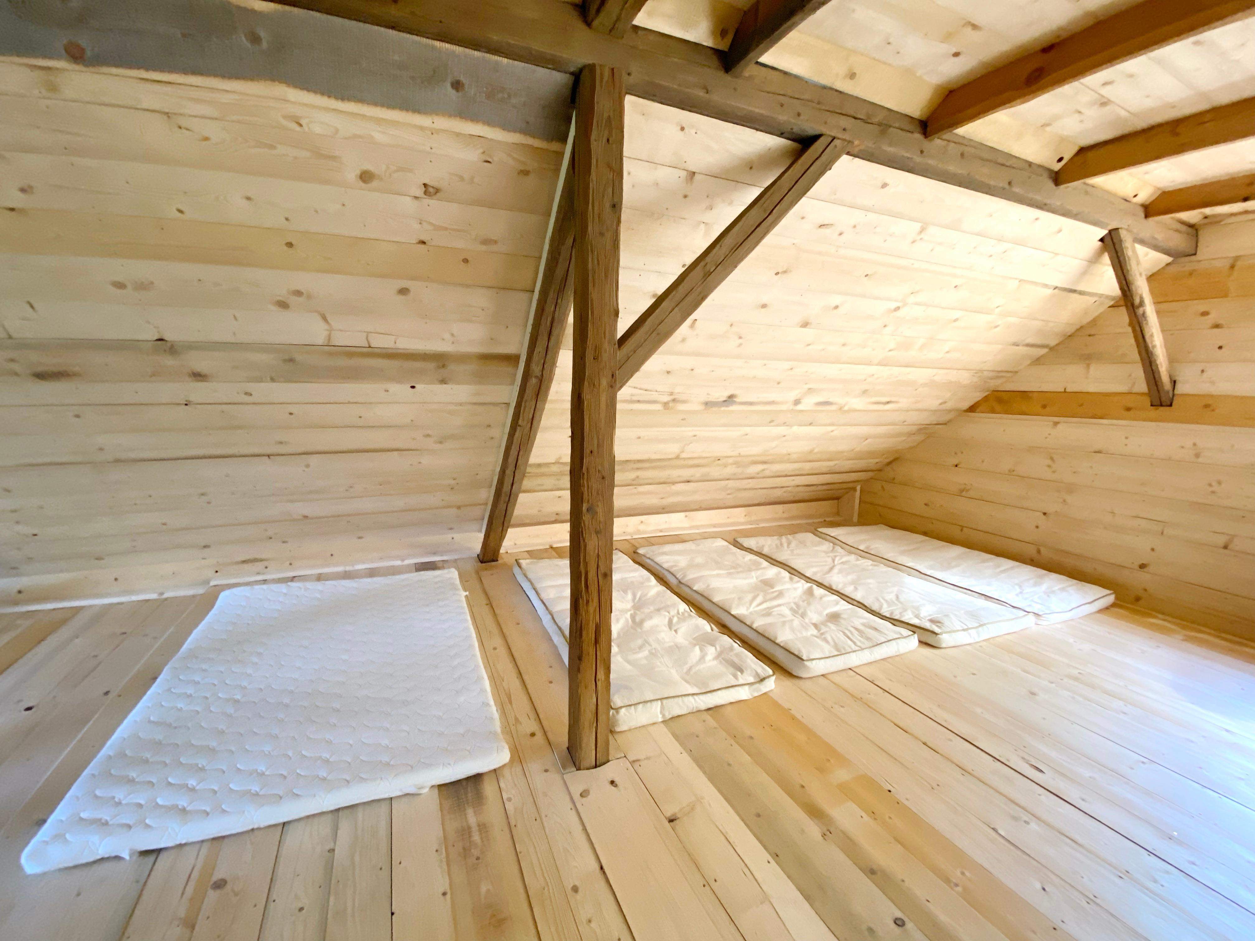 Depending on the number and needs of guests, we compose a comfortable arrangement of 16 mattresses, filled with spelt husk, for healthy rest and sleep.